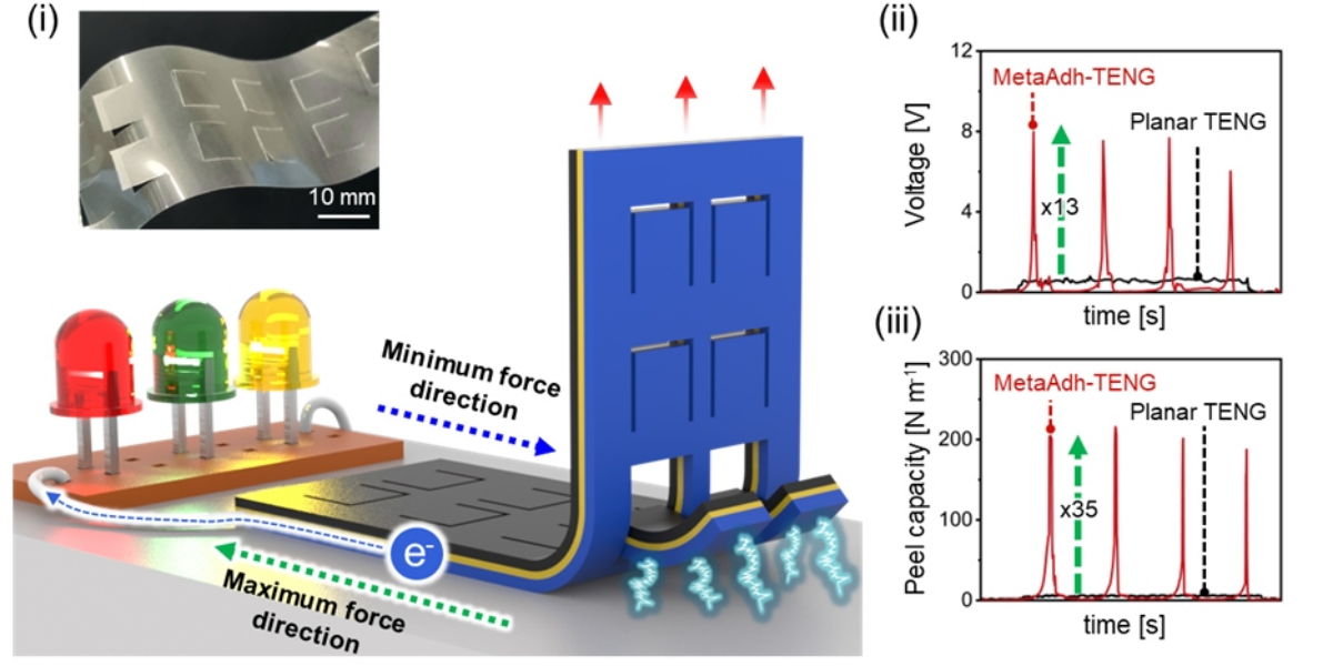 울산과학기술원(UNIST) 연구팀이 전원을 사용하지 않고 단순한 접촉과 분리만으로 전기 신호를 만들어내는 접착 필름을 개발해 주목받고 있습니다. 특수 절개 패턴을 통해 기존 대비 접착력은 35배, 전기 출력은 약 13배 향상시켰다고 합니다. 또, 출력과 접착력을 사용자 환경에 맞춰 조절할 수 있어 다양한 산업용 센서에 맞춤 적용이 가능합니다. 특히 외부 전원 없이도 스스로 전기를 생성하는 기술은 웨어러블 센서, 보안 시스템, 산업 안전 모니터링 등 다양한 분야로의 확장이 기대됩니다.