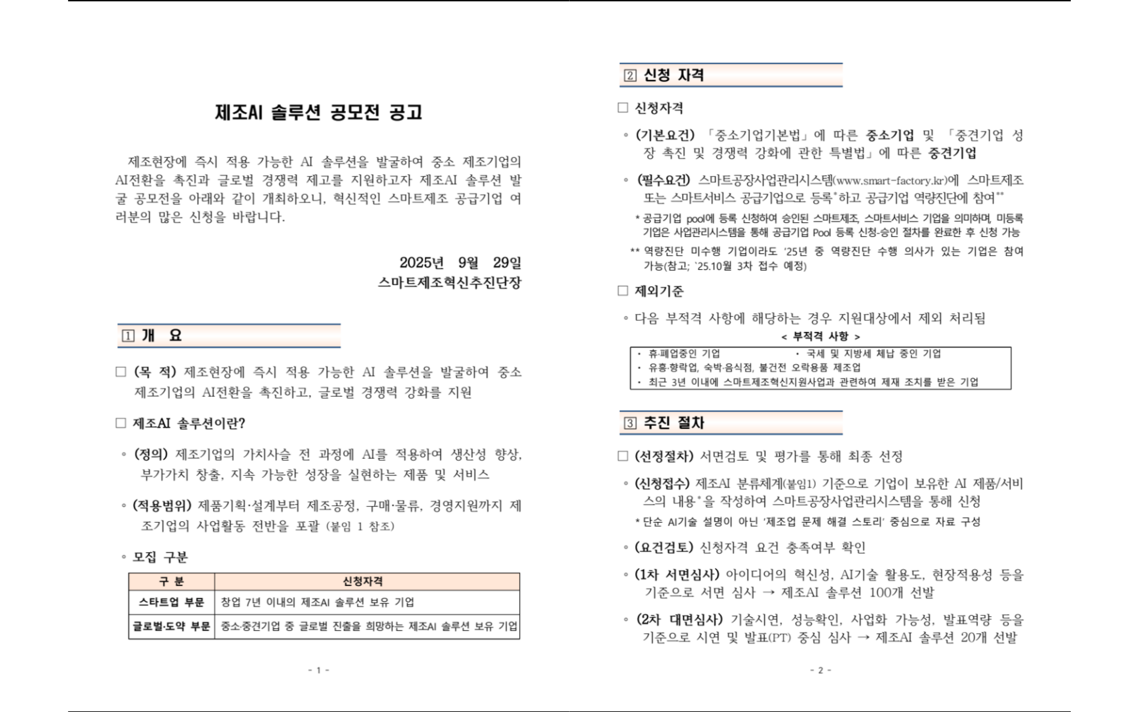 | 사업명 | 2025년 제조AI솔루션 공모전 |