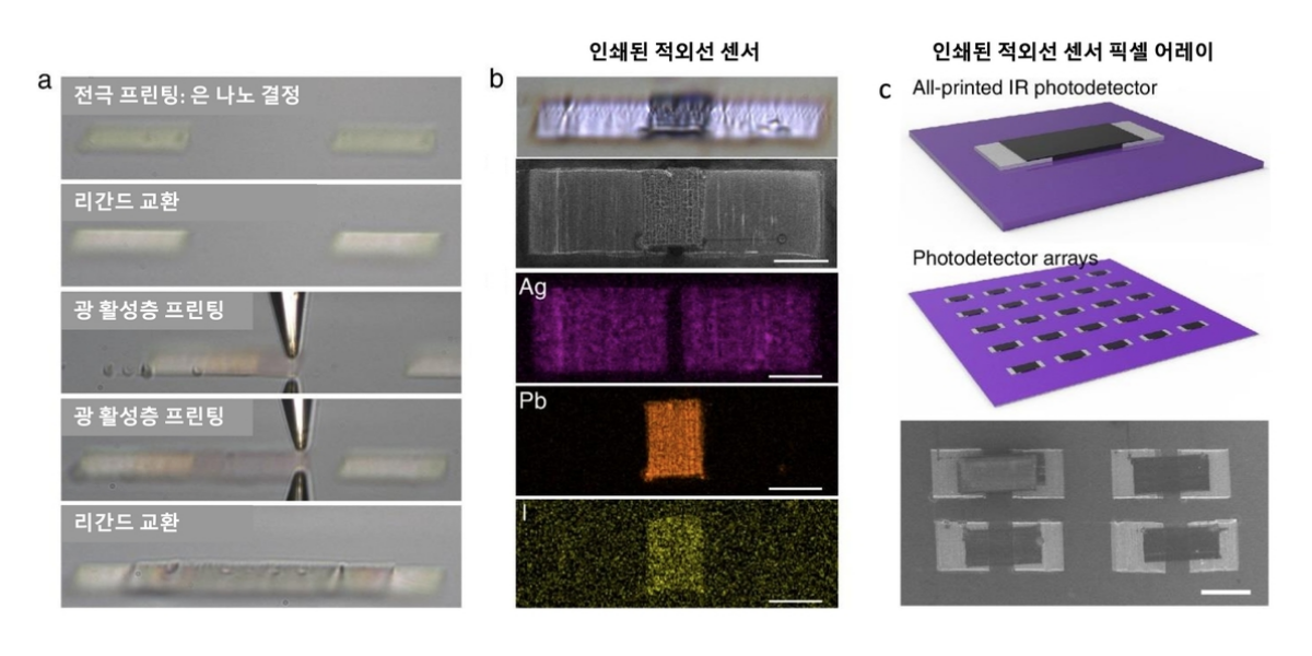 고온 공정 없이도 적외선 센서를 정밀하게 구현할 수 있는 상온 3D 프린팅 기술이 개발됐습니다. 이 기술은 금속, 반도체, 절연체를 각각 액상 나노잉크로 전환해 층층이 적층하고, 리간드 교환 기술을 적용해 전기 전도성을 확보합니다. 이를 통해 열처리 과정 없이도 10㎛ 이하 수준의 고해상도 센서를 구현할 수 있으며, 전력 소비는 줄이고 환경 부담은 낮춘 친환경 공정으로 주목받고 있습니다. 향후 센서의 소형화는 물론 유연 전자소자, IoT 디바이스 등 다양한 응용 분야로 확장될 가능성이 높습니다.