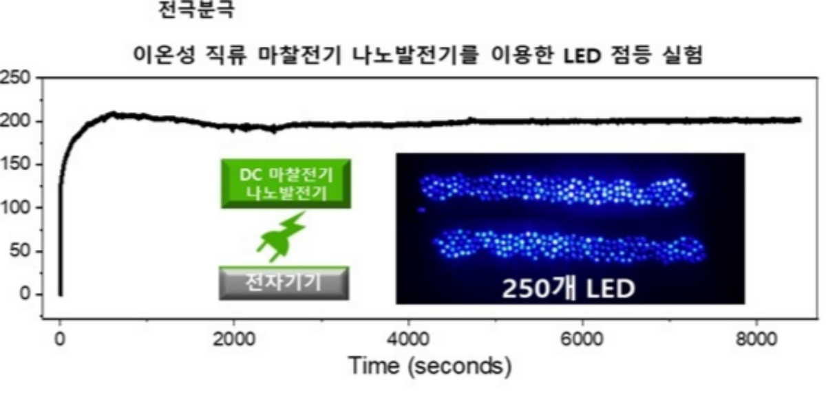 배터리나 외부 전자 회로 없이 마찰 전기만으로 직류 전력을 직접 생성할 수 있는 새로운 방식의 나노발전기가 개발되었습니다. 이 기술은 PVC 소재에 가소제를 더해 전하 이동을 유도하고, 전극 표면에 이온을 축적해 내부 전기장을 생성하는 구조를 갖습니다. 복잡한 전자 회로 없이도 수십~수백 mW/㎡에 달하는 출력을 제공하며, 실제로 LED 수백 개를 점등시키는 데 성공해 차세대 에너지 자립형 소자에 대한 기대를 모으고 있습니다.